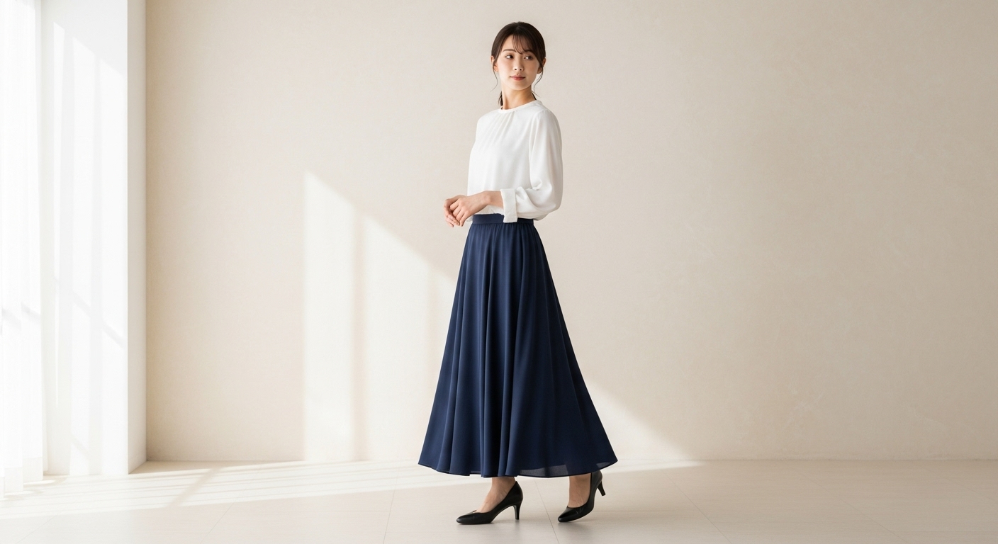 この記事では、職場で失敗しないロングスカートの選び方から、具体的な着こなし方まで詳しく解説していきます。