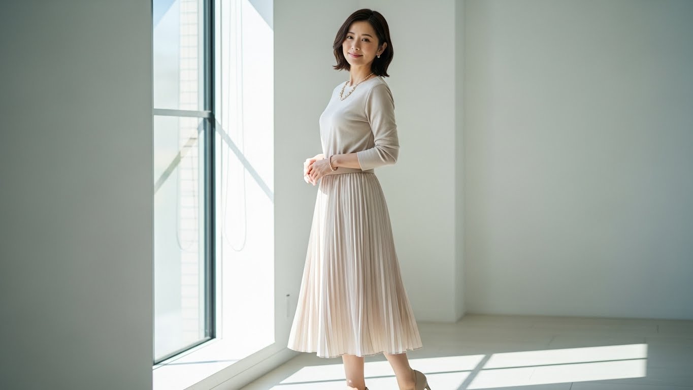 プリーツスカートは、選び方と着こなしのポイントを押さえると、年齢や体型を問わず取り入れやすいアイテムです。