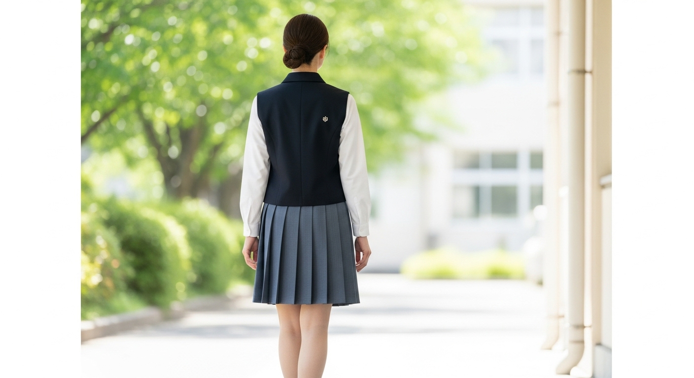制服のプリーツスカートは幅広で丈も短いため、骨格ストレートには不向きなデザインです。