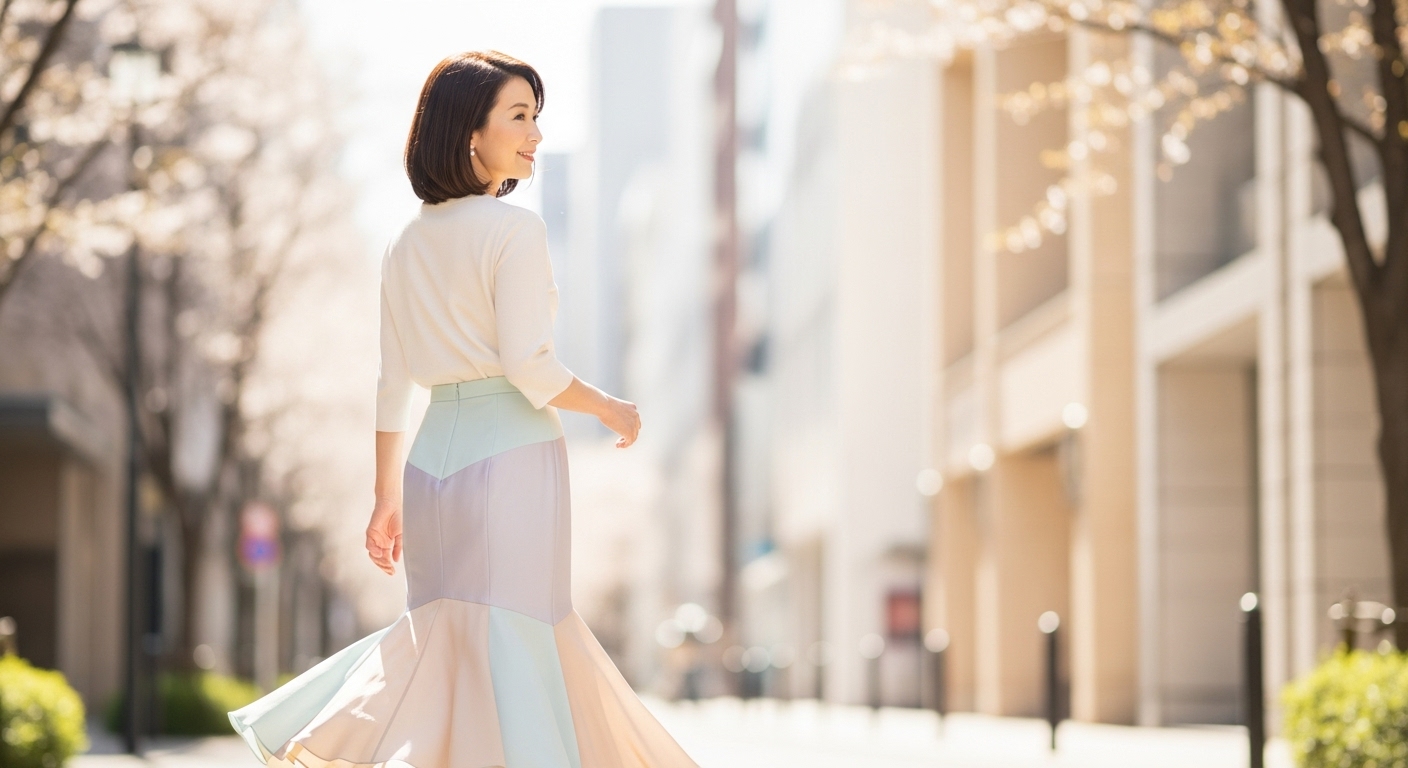 春のマーメイドスカートは、素材とカラー、シルエットの選び方を押さえれば、誰でも大人っぽく洗練された着こなしが叶います。