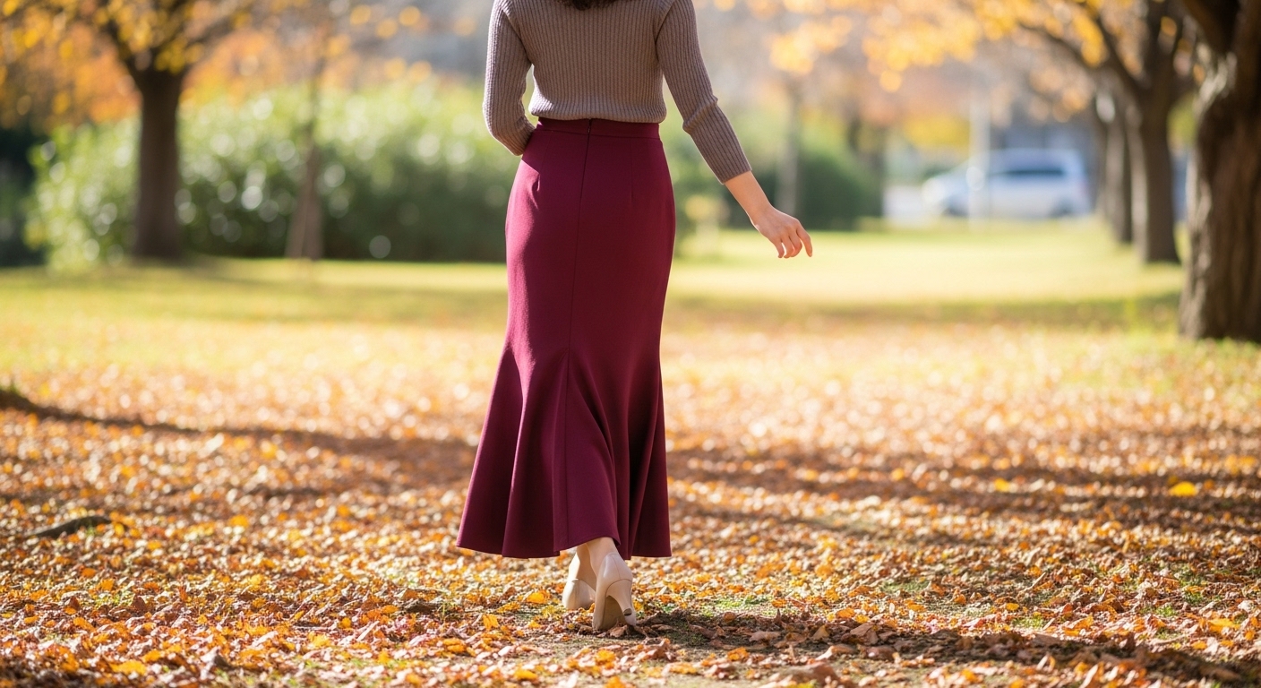 秋のマーメイドスカートは、素材・色・シルエット選びが成功の鍵を握ります。