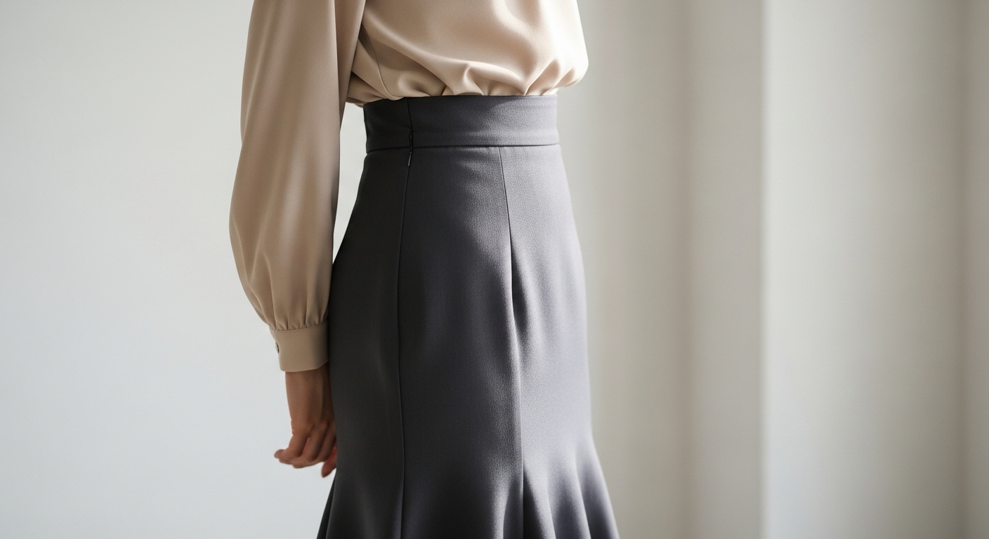 例えば、黒のマーメイドスカートにグレーのトップスを合わせるなど、トーンを揃える方法が効果的です。