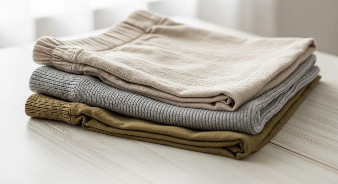 リネン混や綿麻ミックスなど、落ち感のある素材を選ぶと体のラインを拾いにくく快適です。