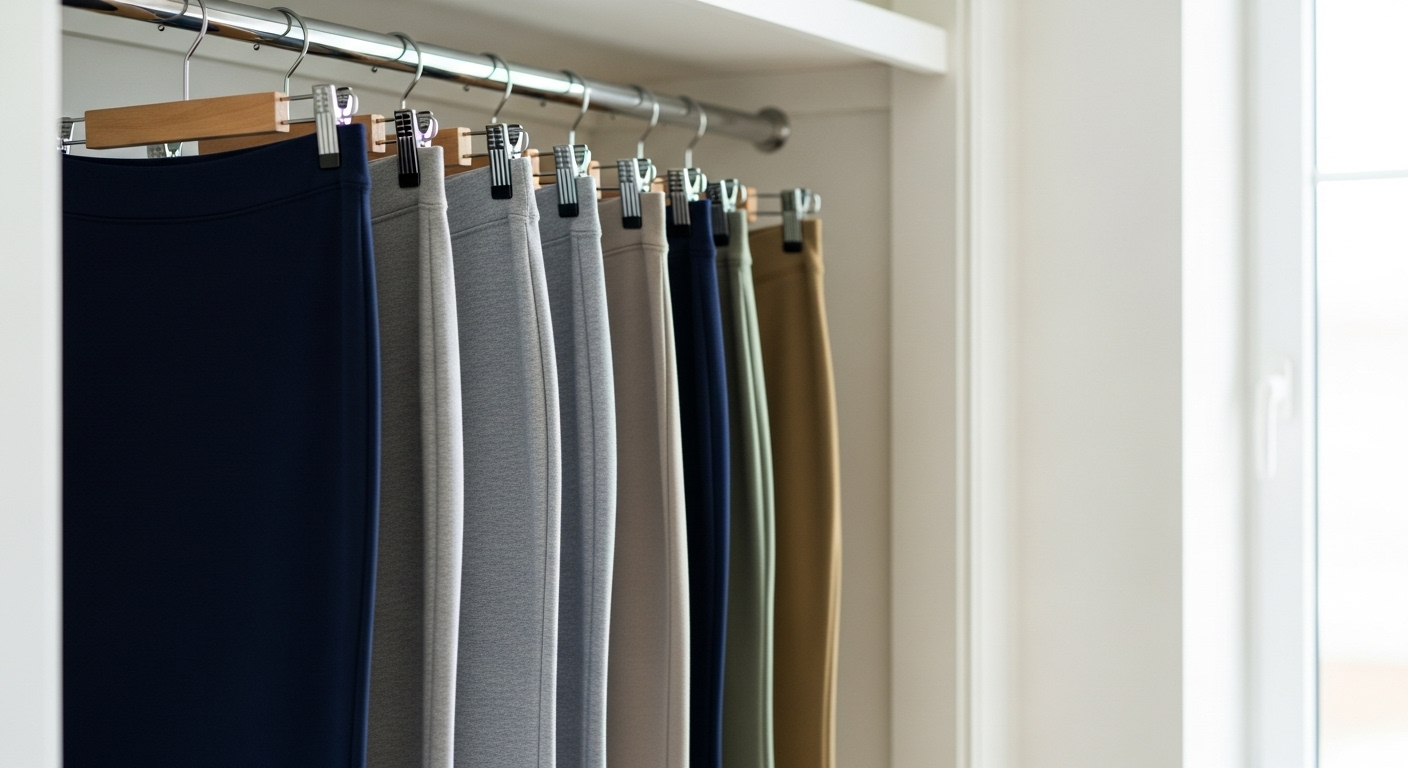 座った時や歩いた時のシルエットも確認して、適度なゆとりがあるものを選びましょう。