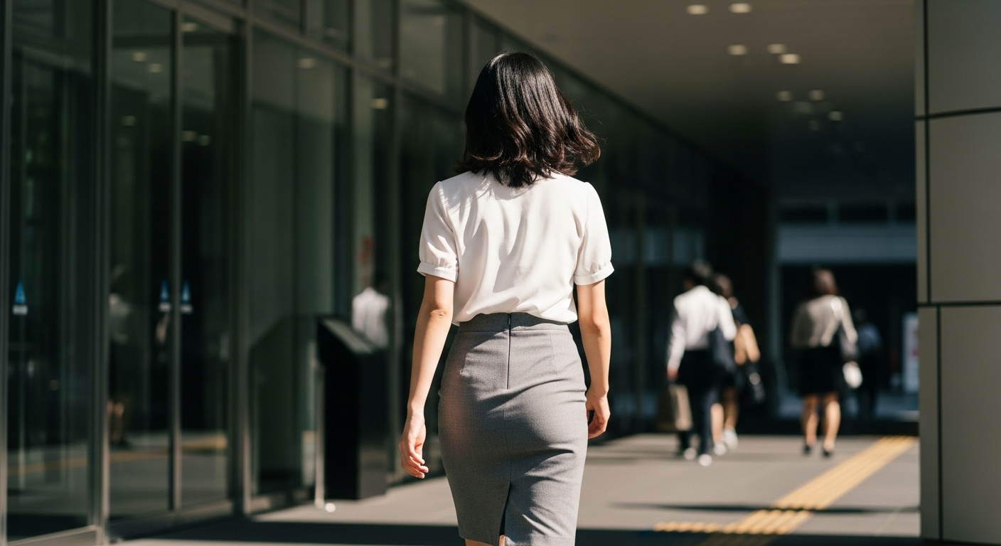 ブラウスとタイトスカートの組み合わせは、オフィスシーンや少しきちんとした場面に最適です。