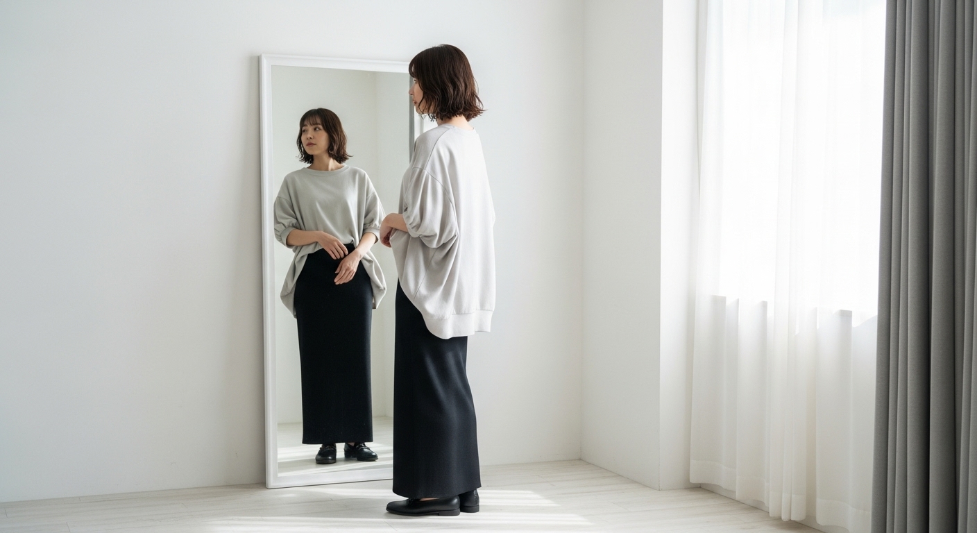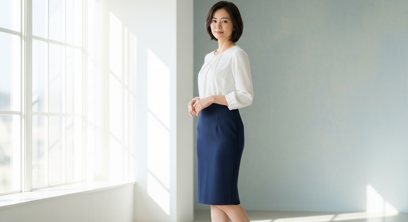 体型の悩みは、工夫次第で解決できるものです♪「隠す」のではなく「整える」という発想で、自分に合ったタイトスカートを見つけてください。
