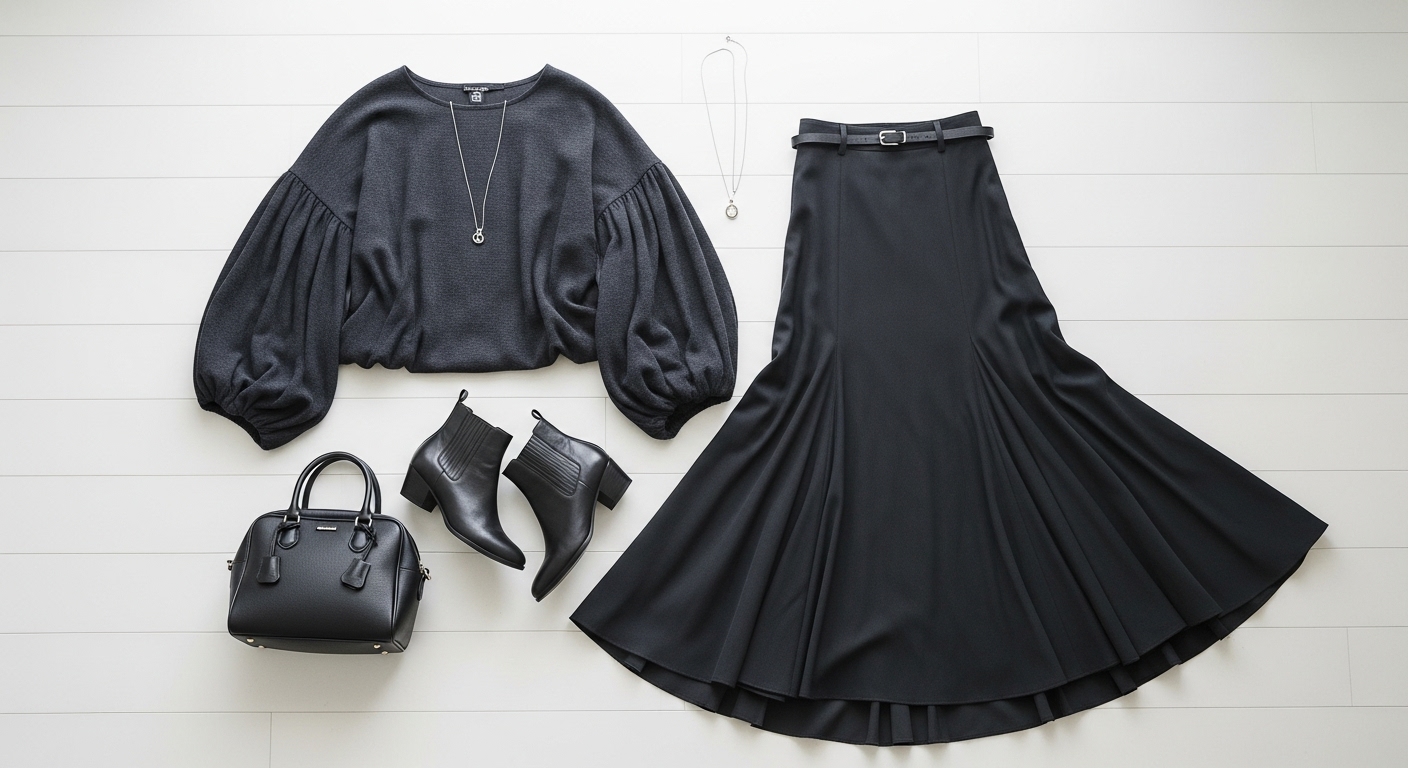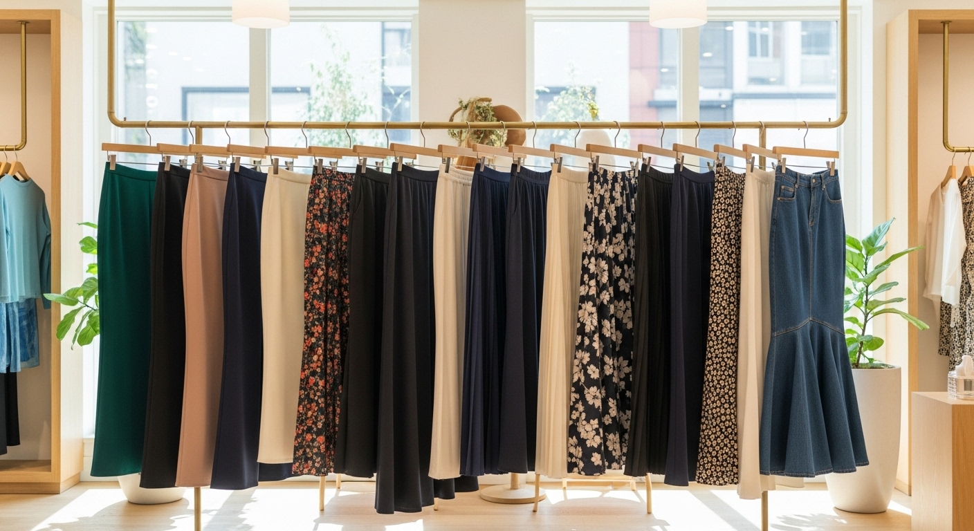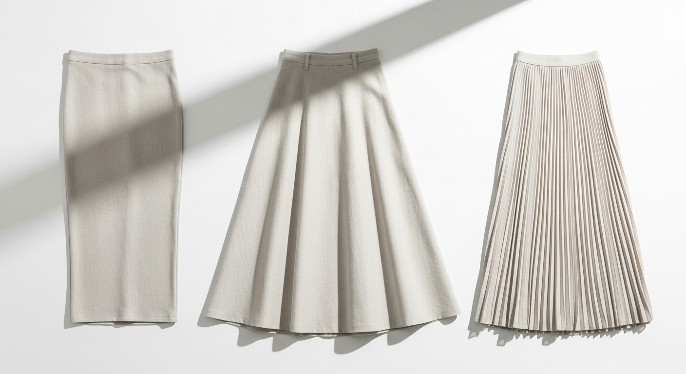 Aラインスカートやマーメイドスカートなら、上半身とのバランスが整いやすいでしょう。