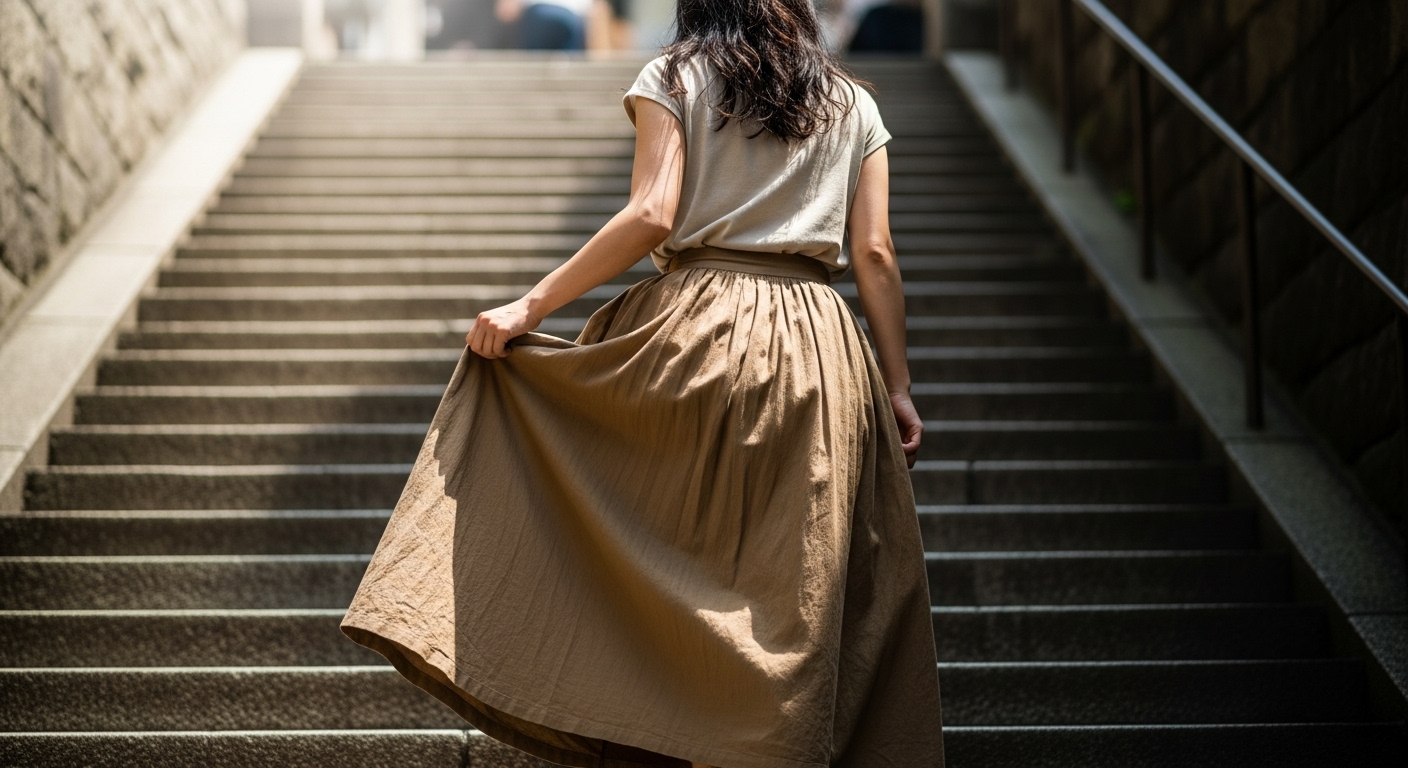 ロングスカートを引きずる悩みを解決|階段や座る時の裾汚れ対策