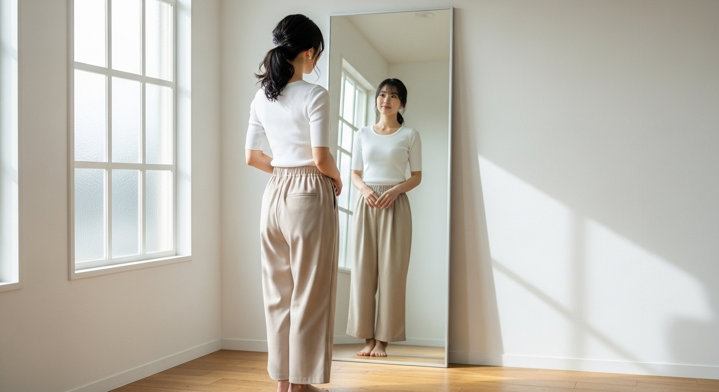 洋梨体型の着痩せに悩む女性向けに、下半身をすっきり見せる服の選び方を解説します。
