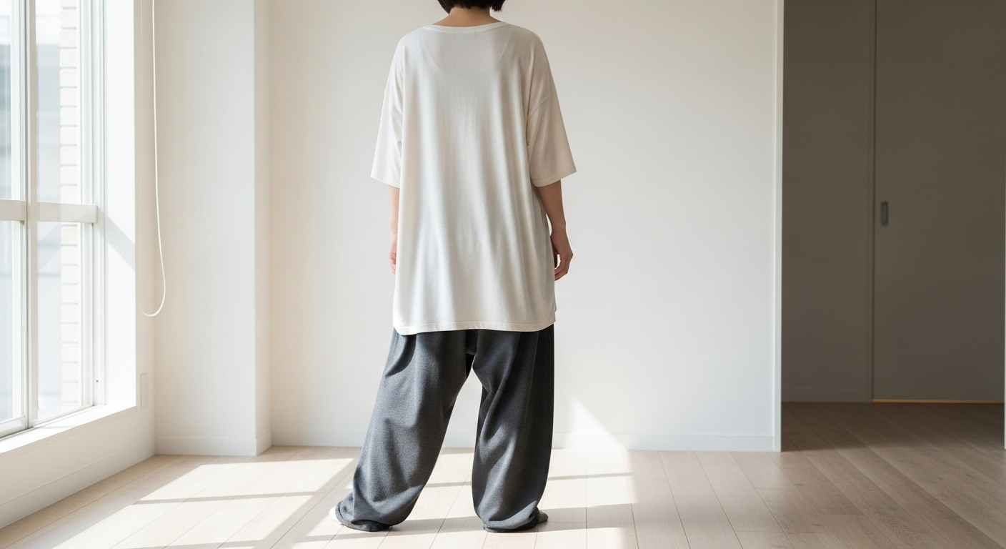 適度にゆとりがあるシルエットを選ぶと、体のラインを拾わずにすっきり見えます♪