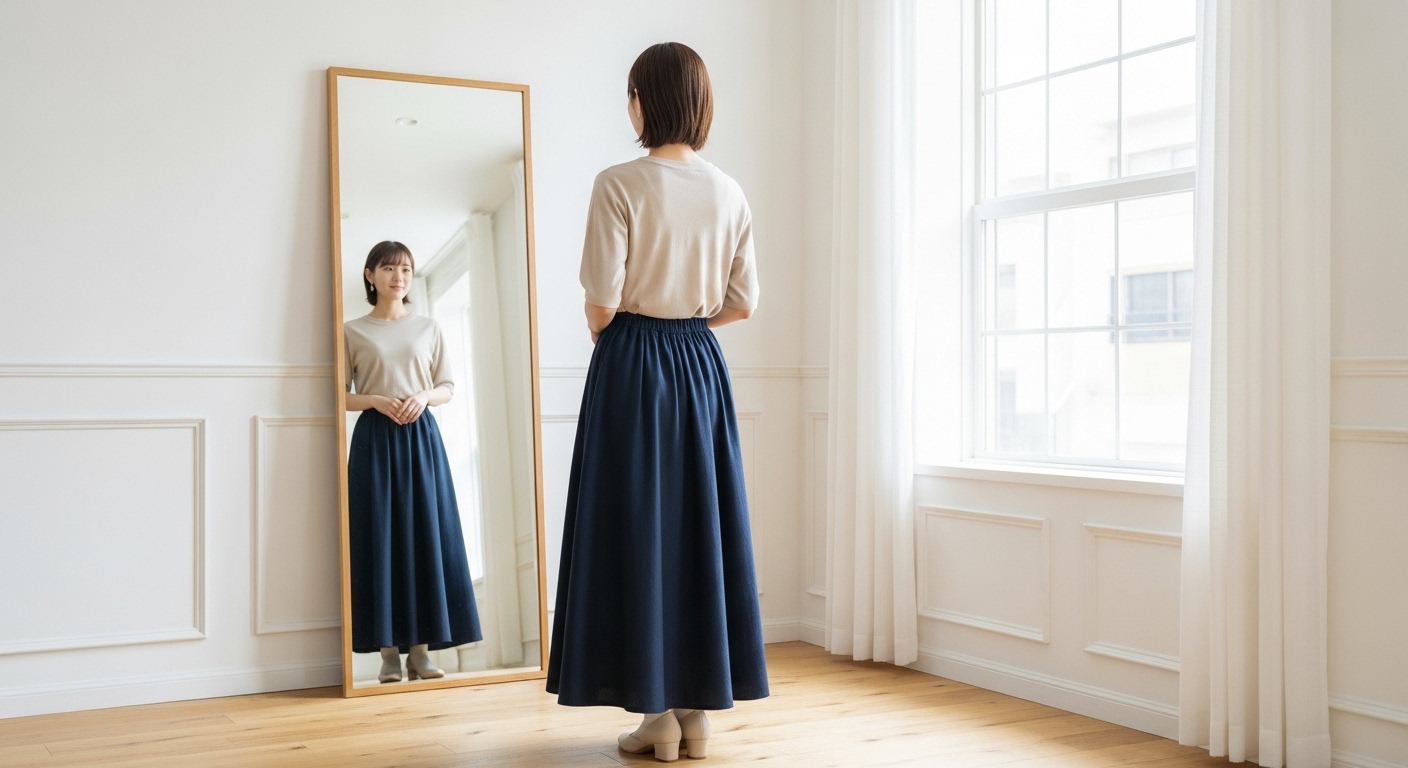 洋梨体型を細見えさせるコツは、体型を隠すことではなく、バランスを整えることです。