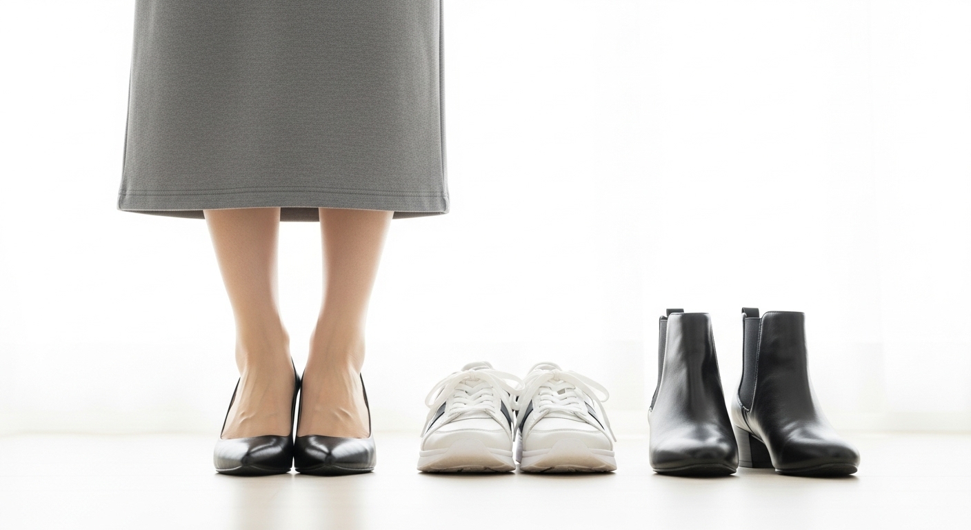スカートの丈や季節に合わせて靴を選ぶと、コーデ全体がまとまりやすくなります。
