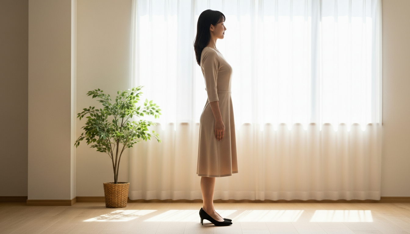 まっすぐ立つだけで、体全体が縦に伸びて見えるんです!
