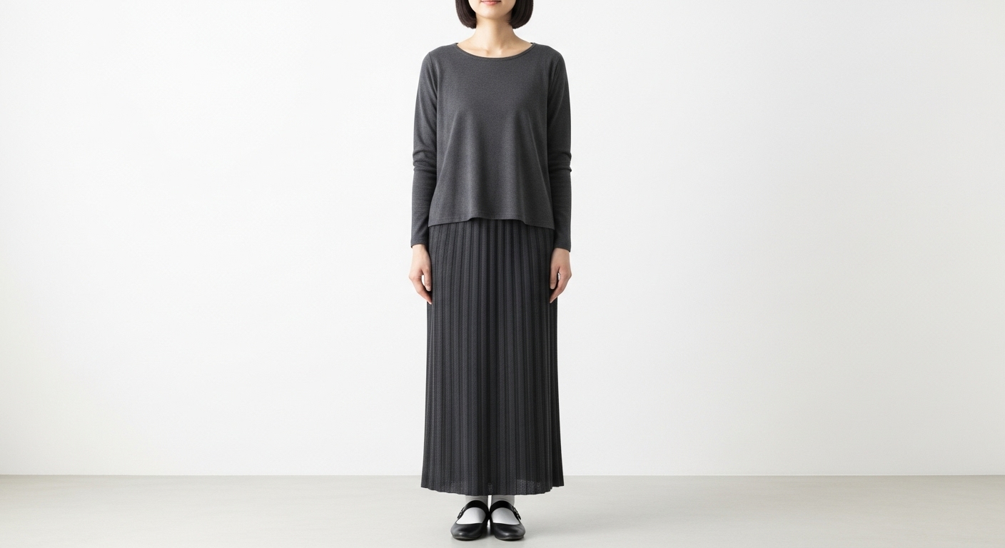 トップスの選び方次第で、脚の見え方は大きく変わります。
