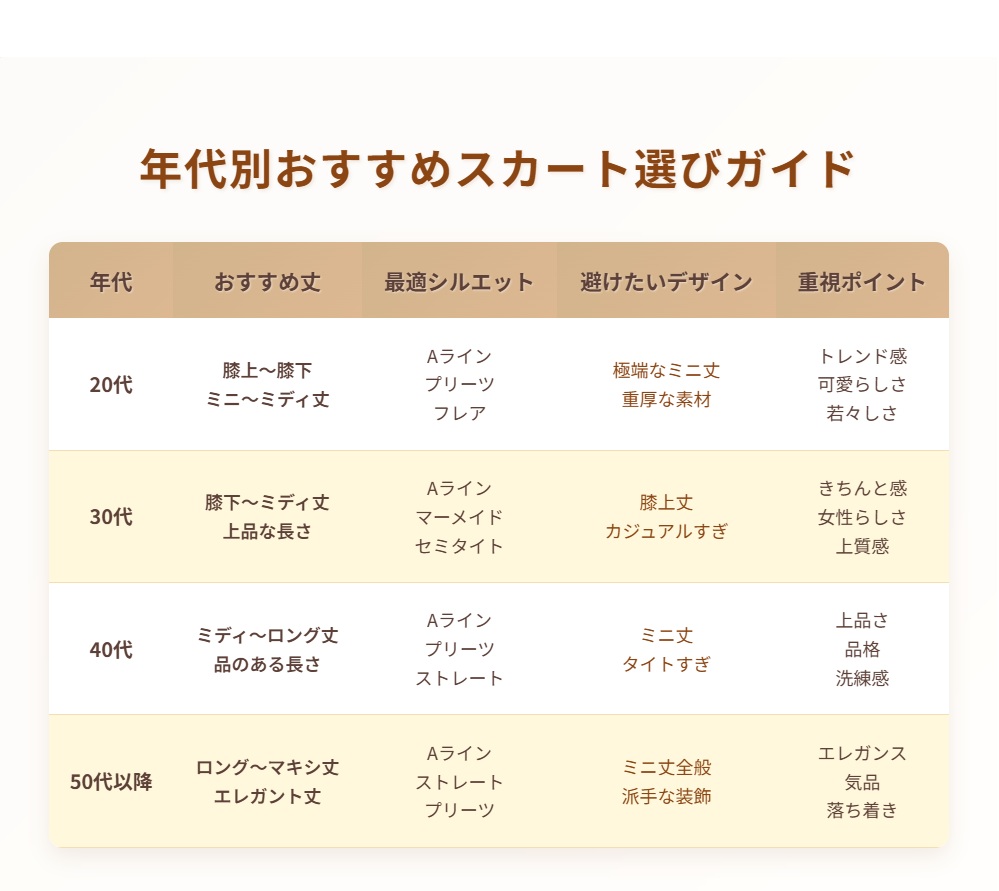 年代によって似合うスカートって、実は結構変わるものなんです。