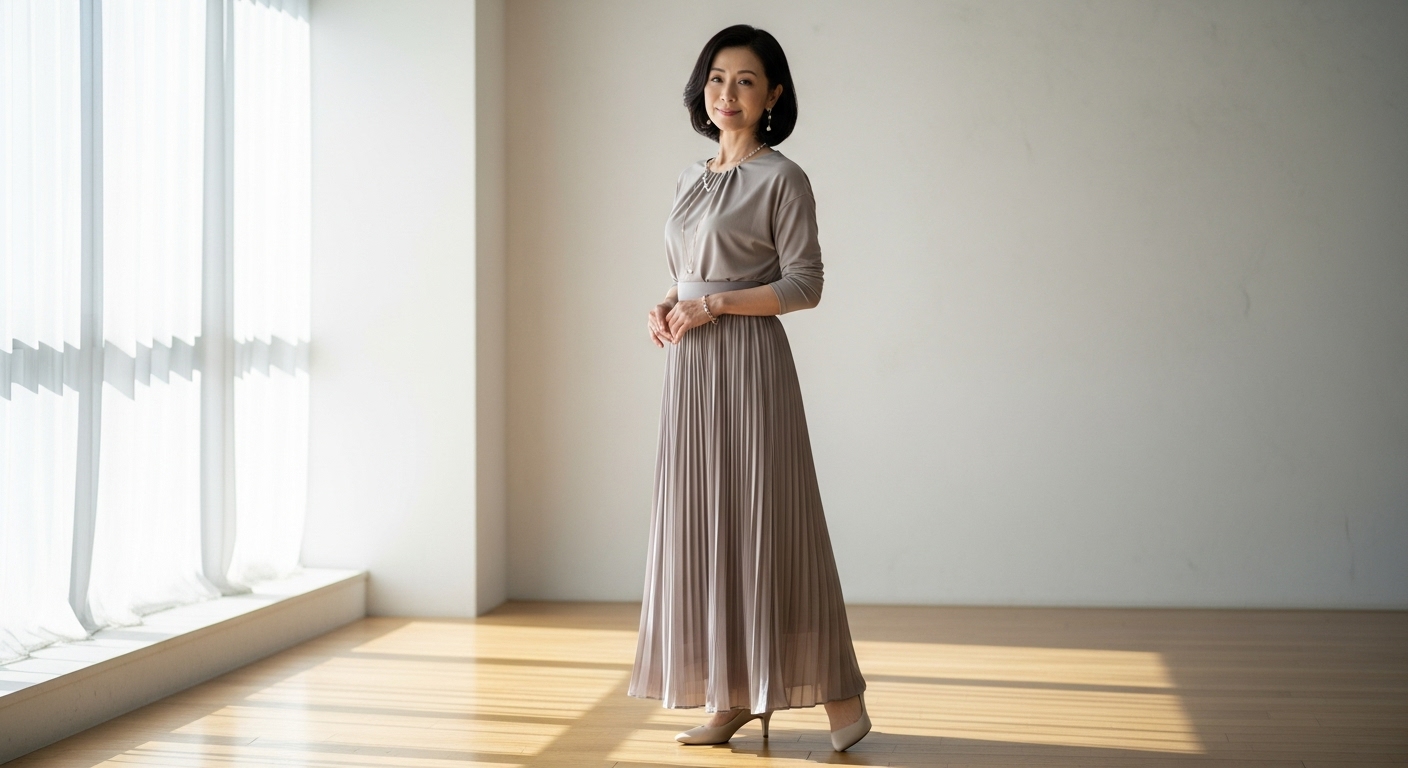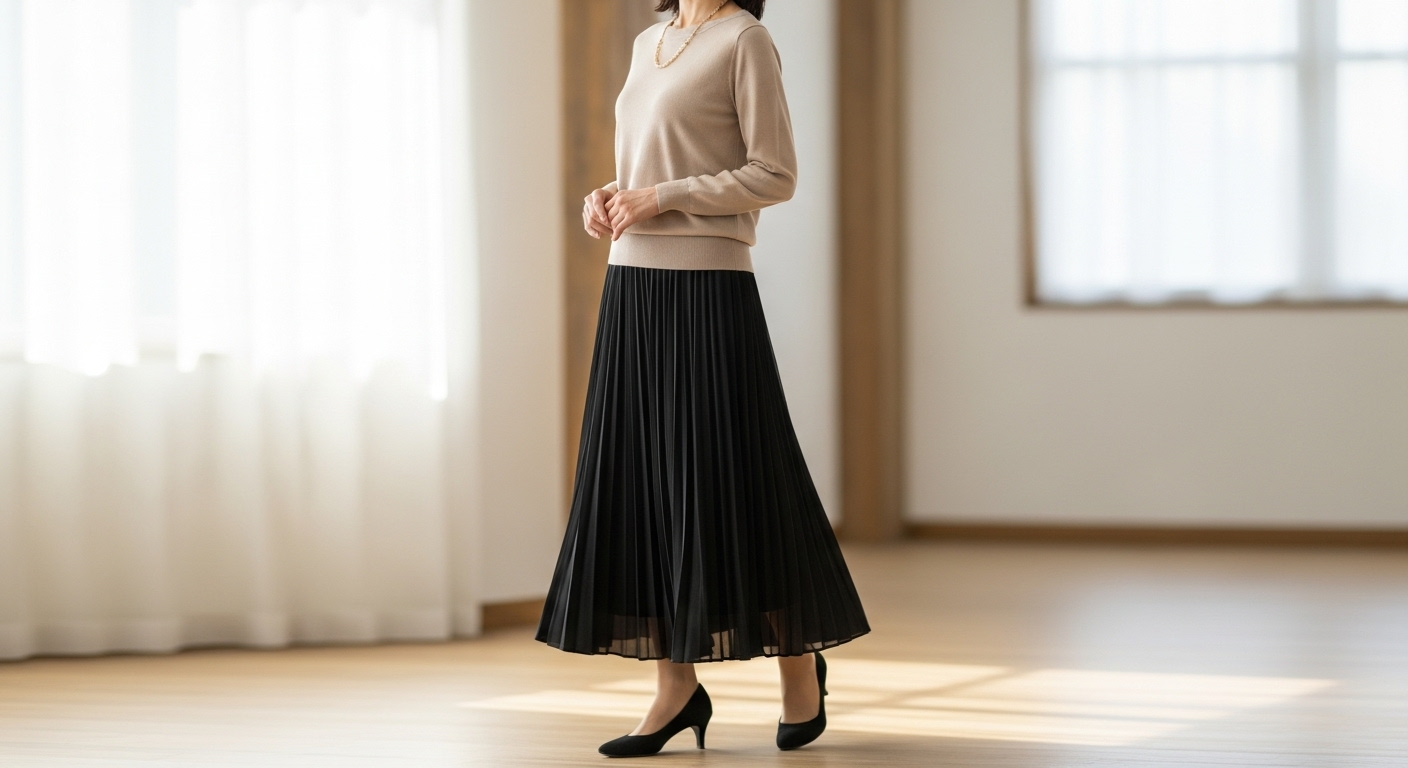 この3つのポイントを押さえれば、プリーツスカートは50代の強い味方になります。