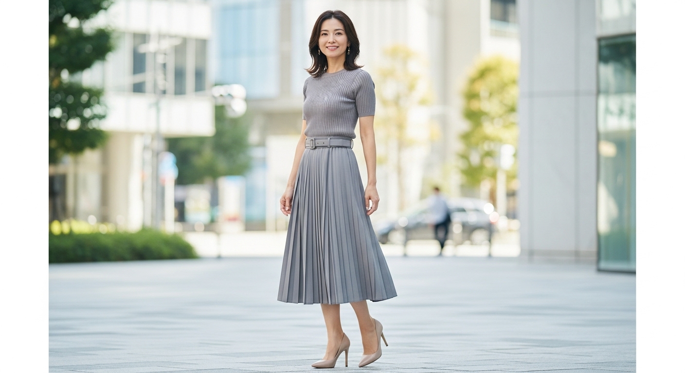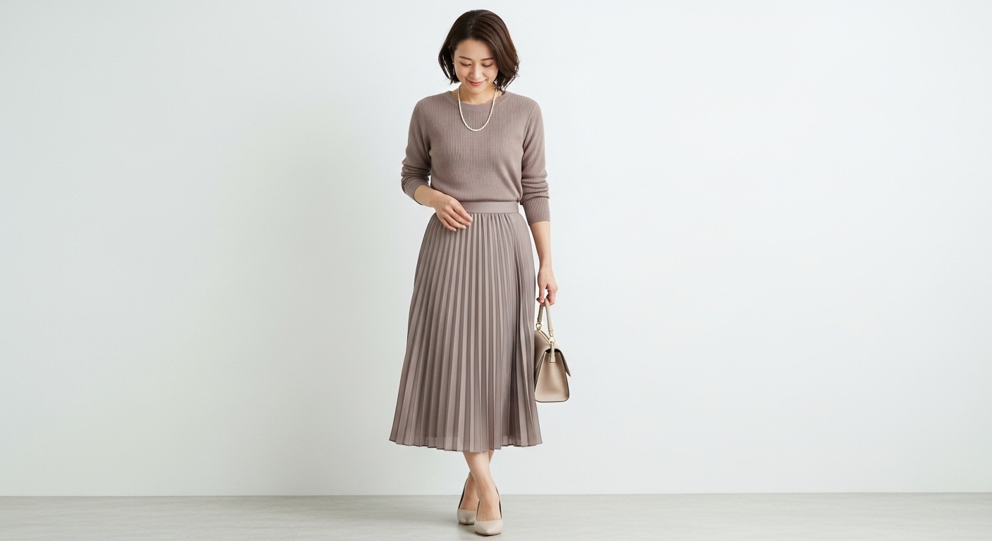 40代のプリーツスカート選びは、丈の長さ・色味・プリーツの幅がポイントです。