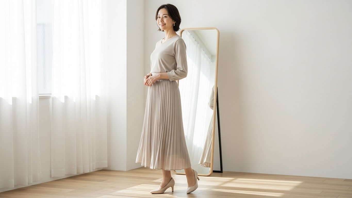 ポイントを押さえれば、プリーツスカートはむしろスタイルアップの味方になりますよ♪