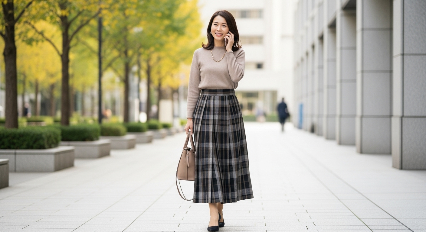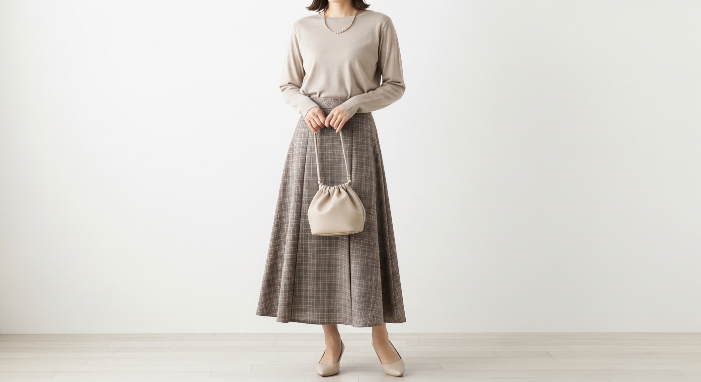 40代女性が秋に取り入れたいロングスカートコーデを、体型カバーのコツとともに解説します。