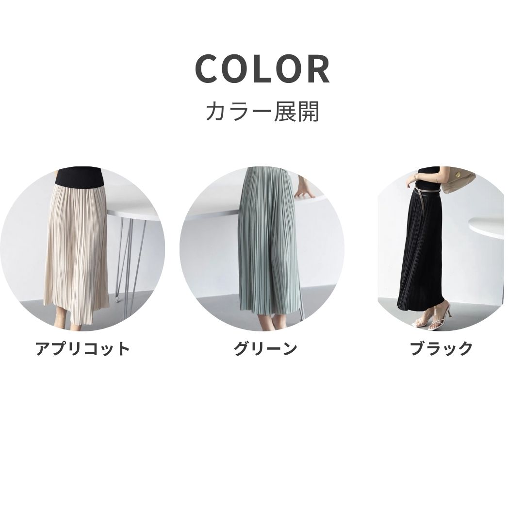 しなやかな光沢素材が生む繊細なプリーツが魅力のロングスカート。軽やかなドレープと上品な佇まいで、カジュアルからきちんとシーンまで幅広く対応。体型を選ばない立体的なシルエットで、快適な着心地と女性らしさを両立します。