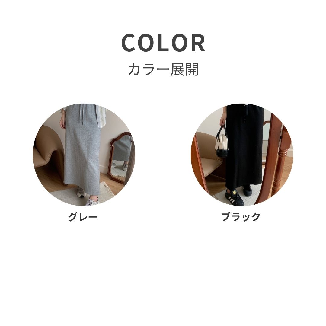 柔らか素材の落ち感ロングスカートは、タイトなのに締め付けゼロ。ウエストのドロスト仕様で体型や気分に合わせて調整が簡単にでき、リラックスした穿き心地を一日中保ちます。