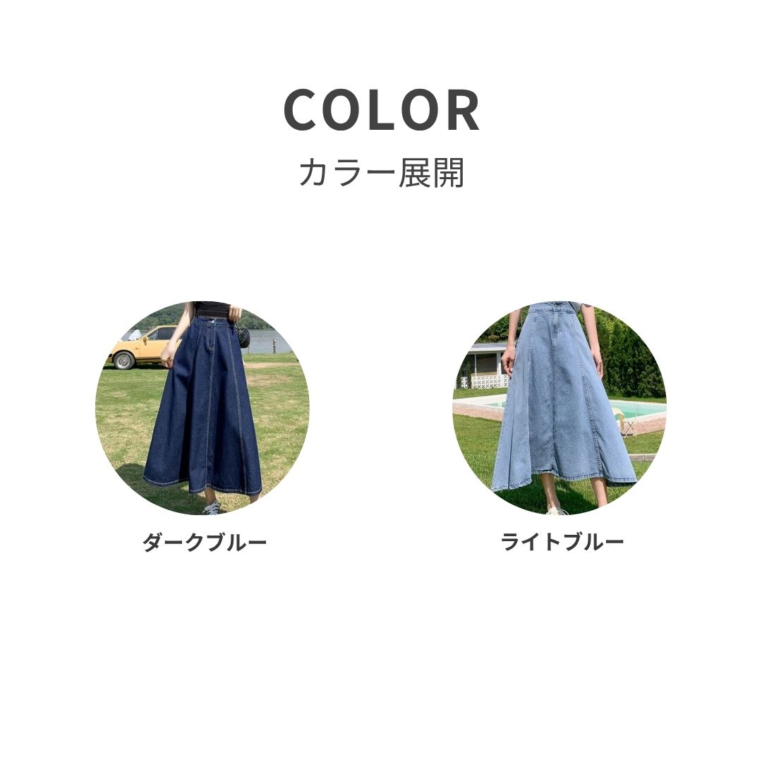 程よい厚みのデニム生地を使用しているため、一年を通して活躍するAラインロングスカート。たっぷりとしたフレアシルエットが体型をカバーしつつ、動きに合わせて軽やかに揺れるのが魅力です。カジュアルにもきれいめにも合わせやすい万能な一枚。